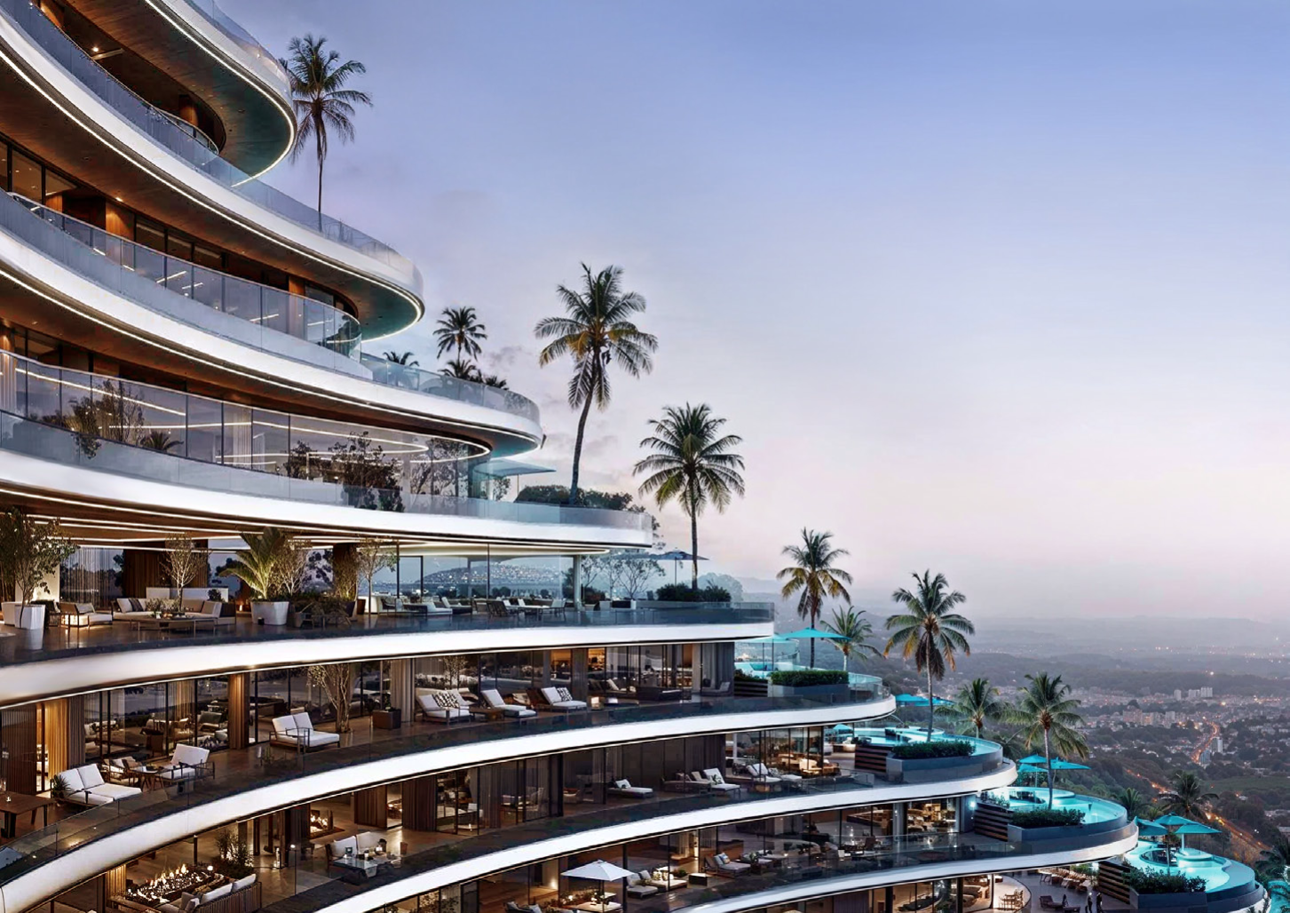 ✔ Swimming pools (podium and elevated levels)