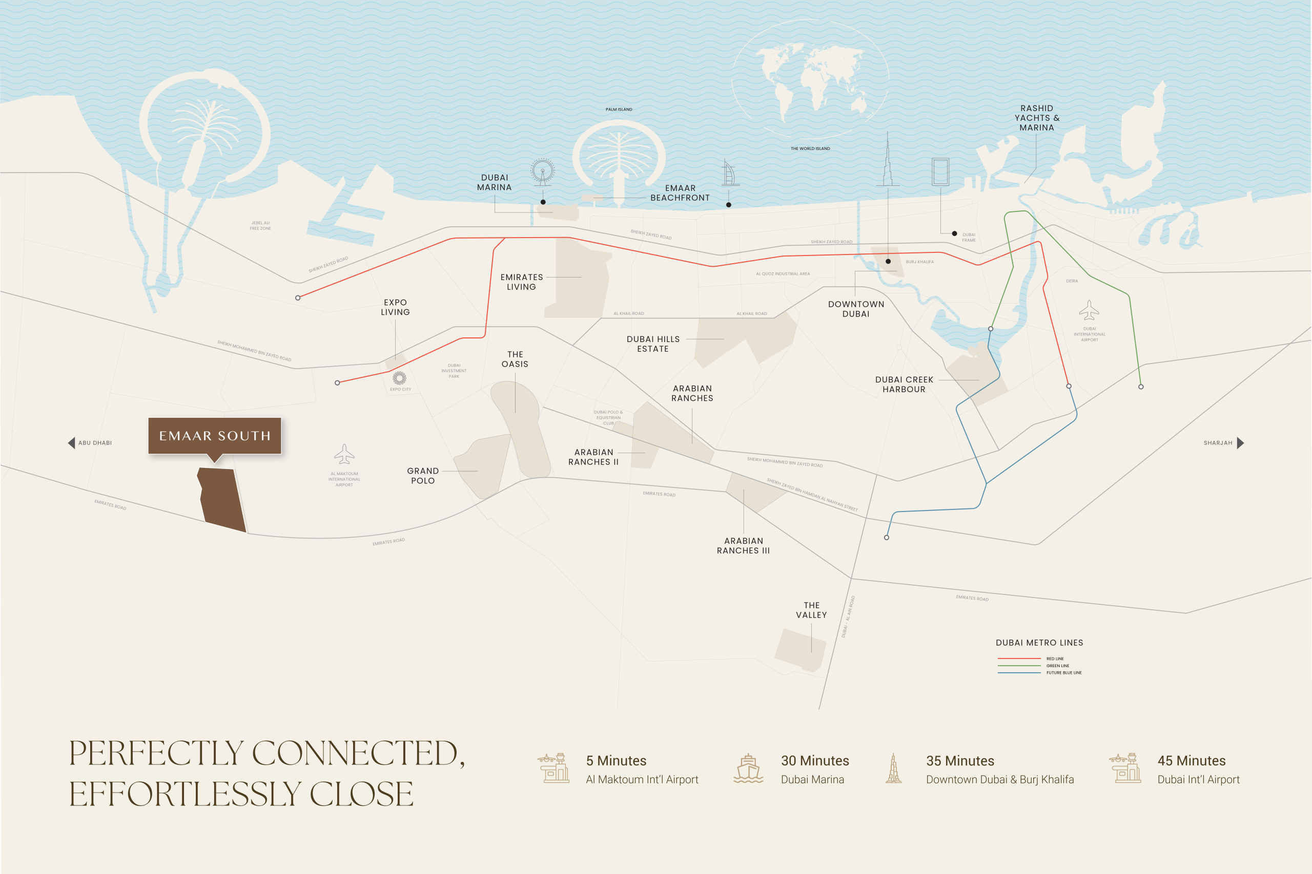 • Approx. 35 minutes to Downtown Dubai