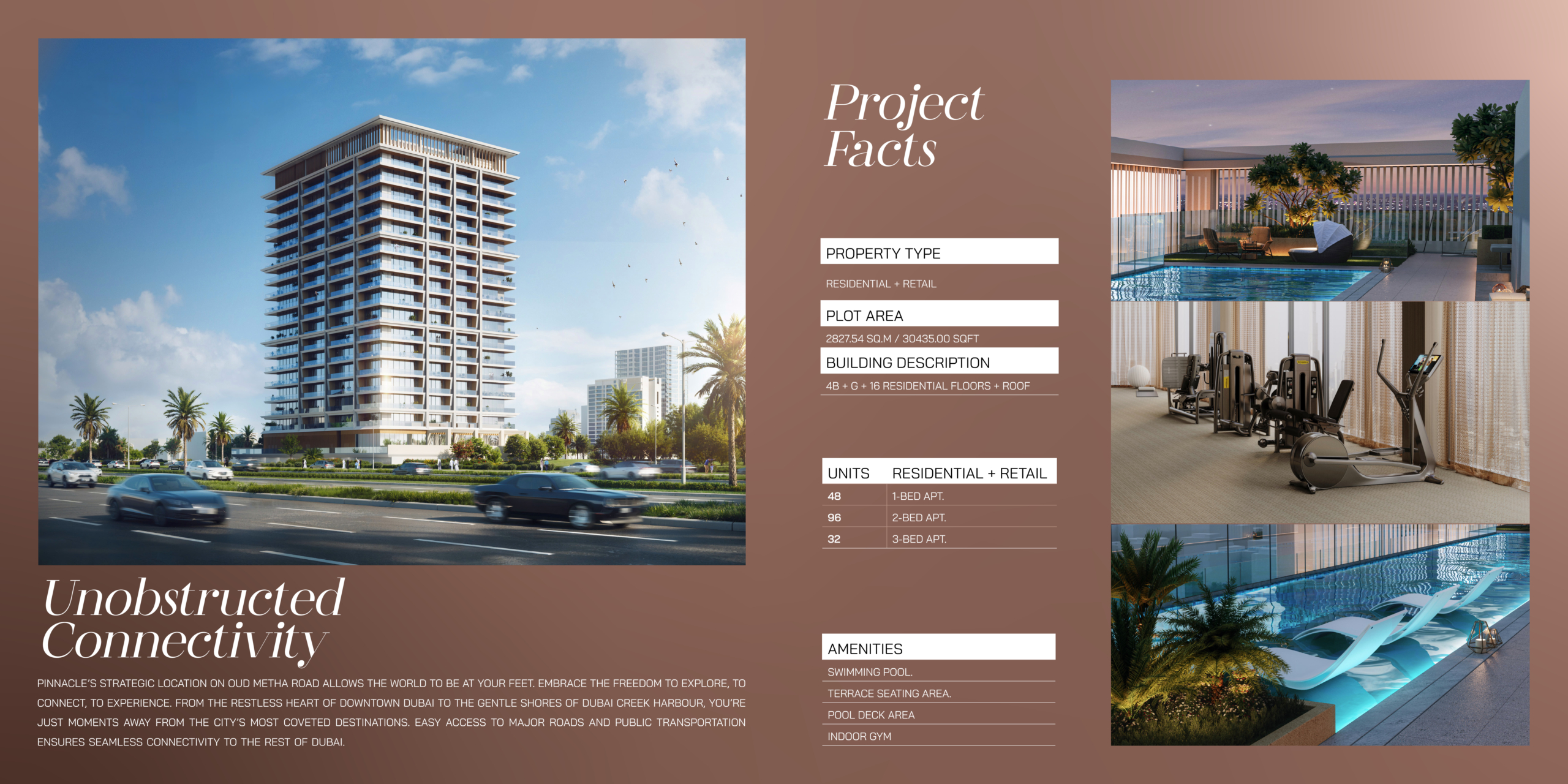 Apartments are designed to provide spacious layouts, floor-to-ceiling windows, high-end finishes, and access to lifestyle amenities within the tower. Its strategic location near Sheikh Zayed Road and Dubai Creek enhances connectivity and convenience for residents.